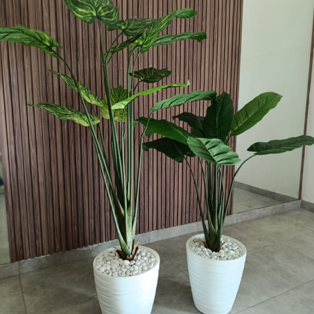 2 Plantes artificielles Alocasia Cucullata et bananier.