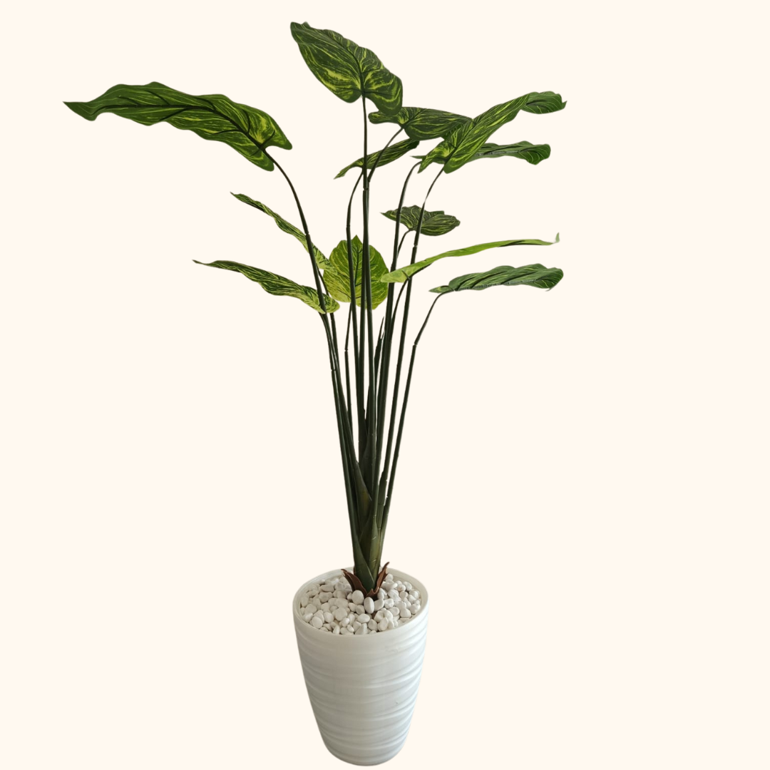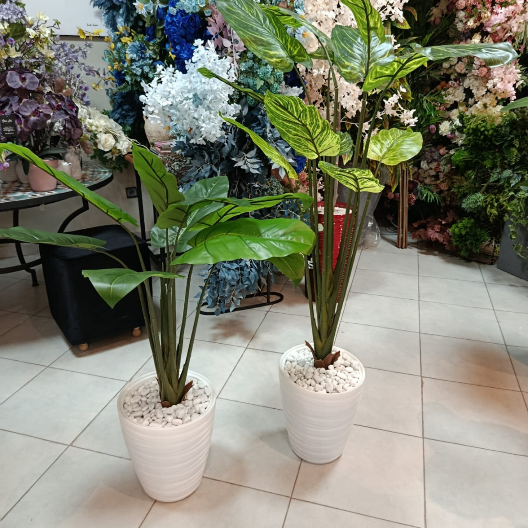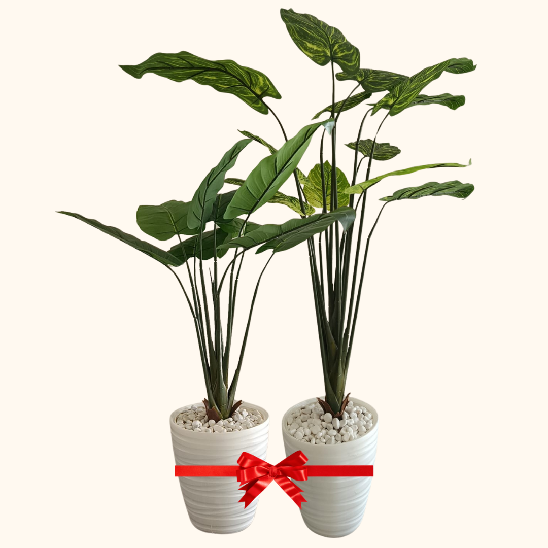 2 Plantes artificielles Alocasia Cucullata et bananier.